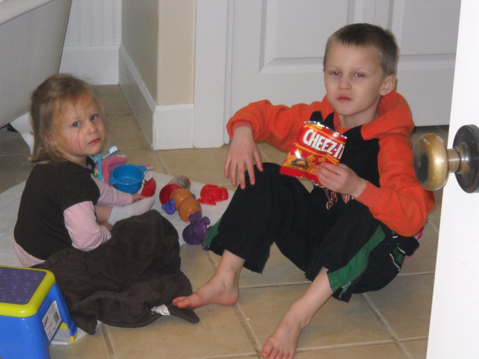 This is what she does every morning to my bathroom. And sometimes every afternoon. And every evening.
